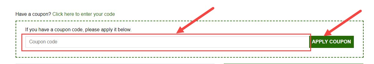 The coupon code input box will appear, where you just need to copy the coupon code and paste it here, then press 'Apply Coupon' to receive our discount.